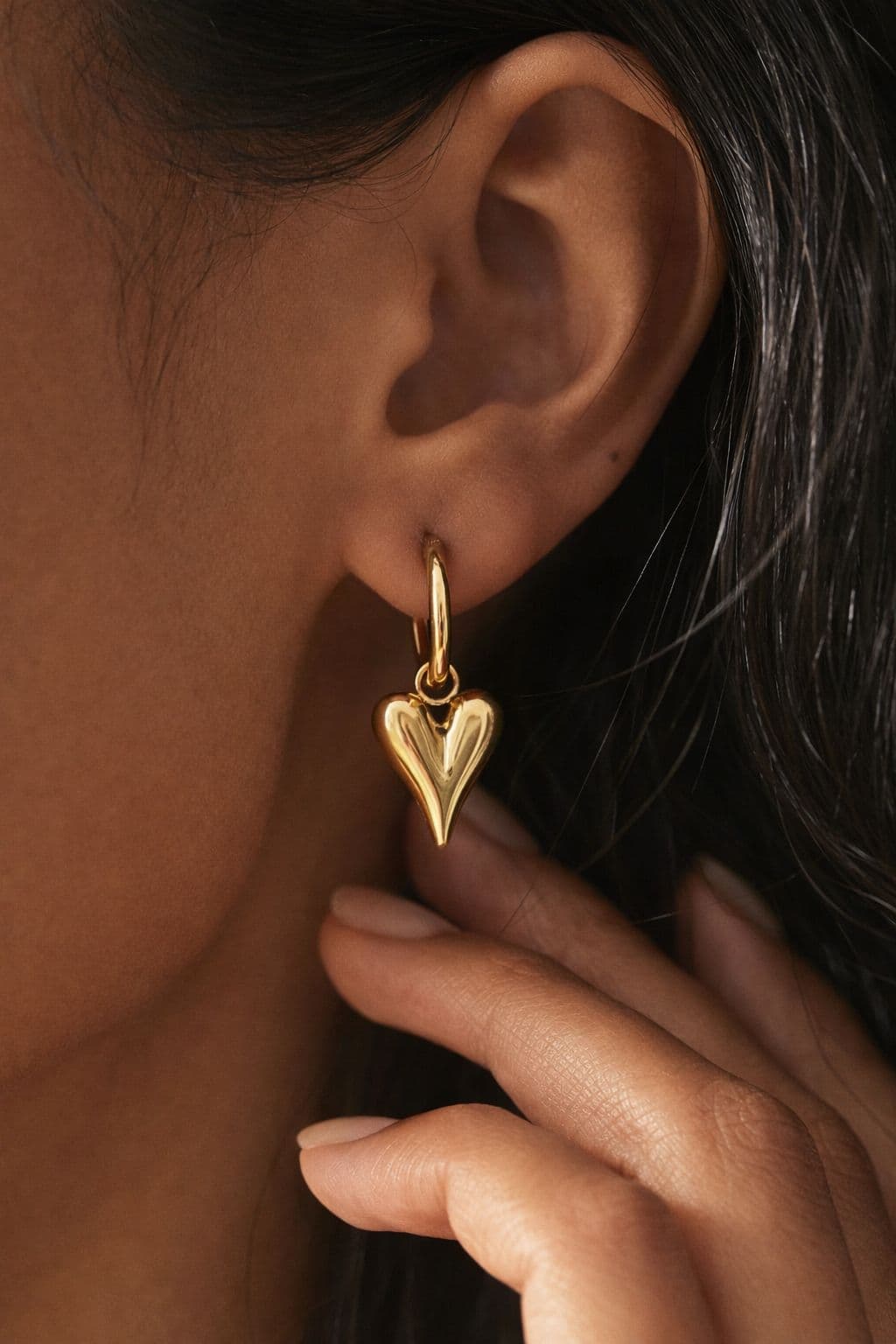 The earring you put on Monday morning and forget to take off all week — because you don't have to. Shower in them. Sleep in them. Hit the gym in them. These puffy heart huggies are 18K PVD coated, which means they'll look exactly this good 6 months from now.