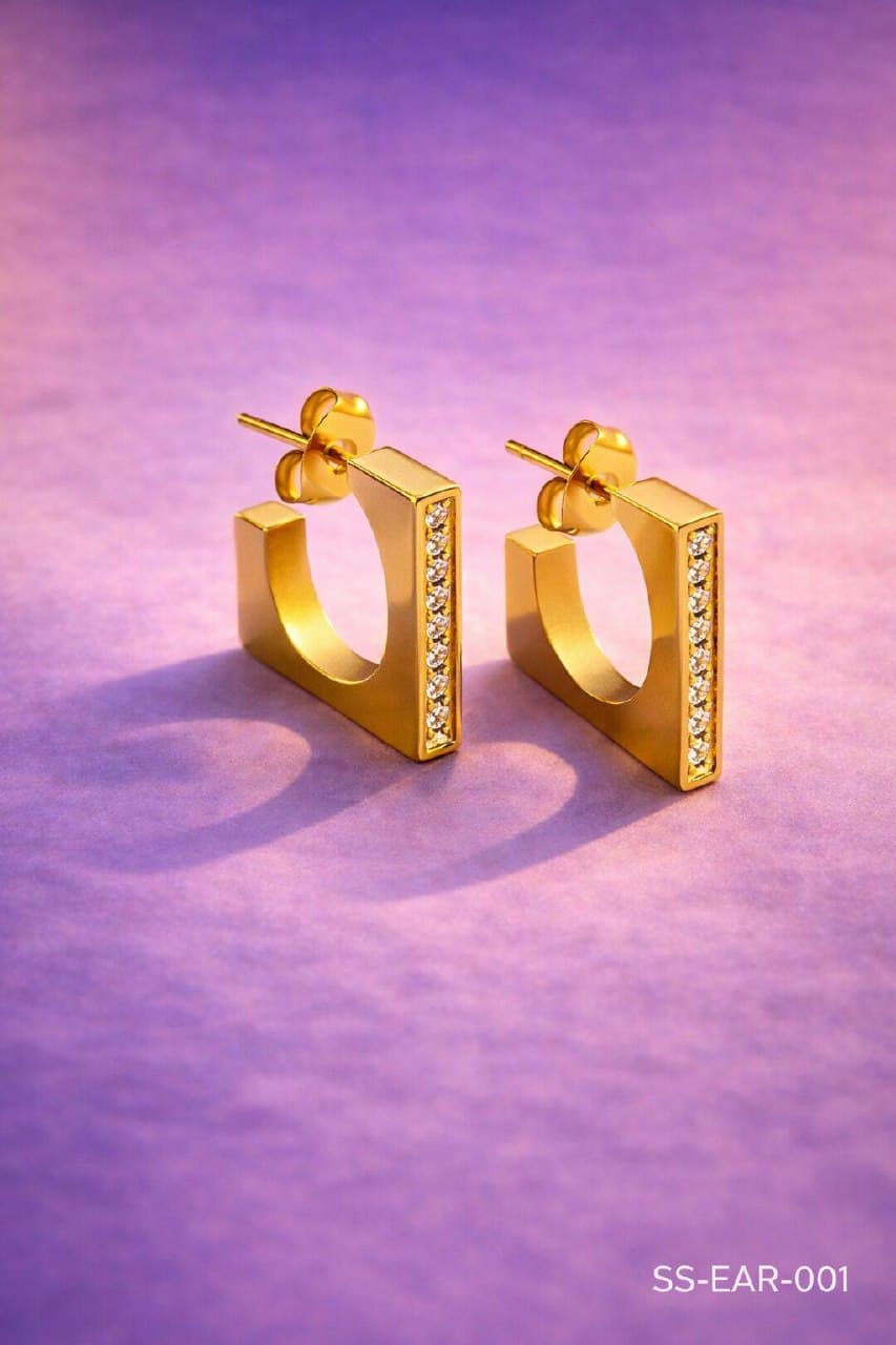 For the girl who thinks round hoops are too predictable. Angular, geometric, with a single CZ racing stripe that catches light like a camera flash. These square-ish hoops are the earring version of "I have taste and I know it."
