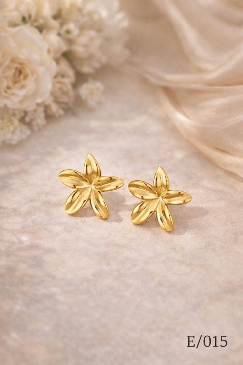 Five golden petals. No stones, no fuss — just quiet confidence sitting on your ears. The earring you grab when you want to look effortlessly put-together in under 3 seconds. Matte gold finish that whispers instead of shouts.