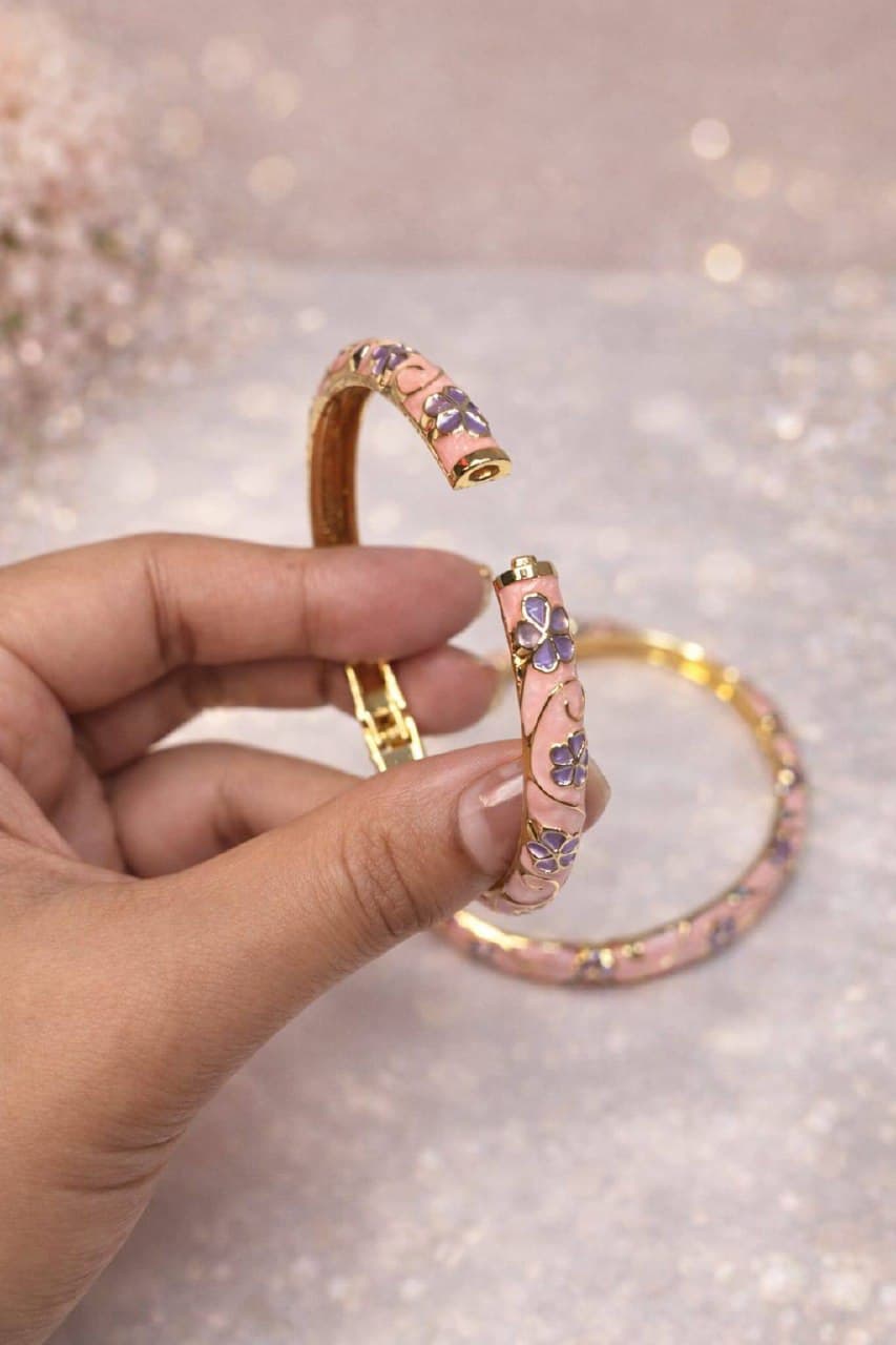 Pink & purple floral vine enamel kada (set of 2)