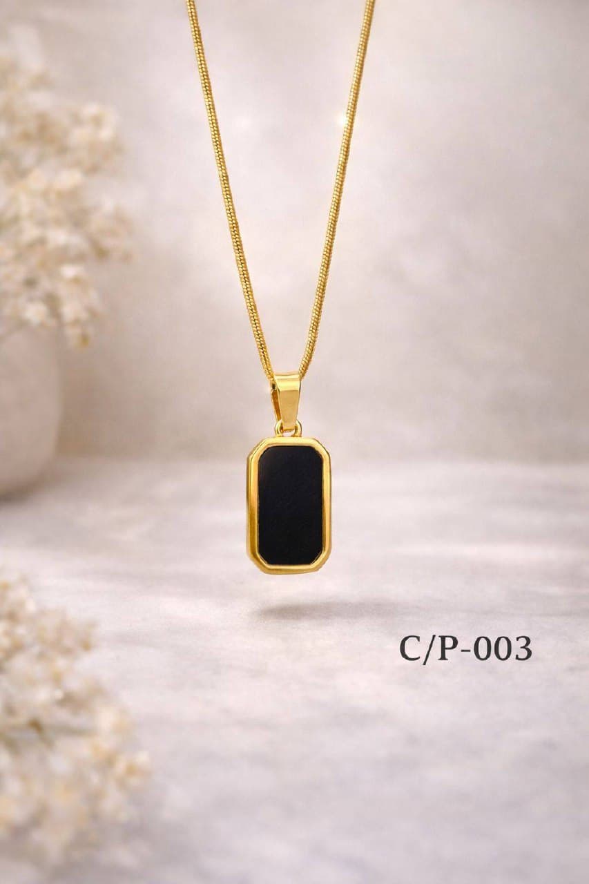 Black onyx meets gold snake chain — midnight elegance that works with everything from a silk blouse to a little black dress. The rectangular pendant has serious weight and presence without being heavy on the neck.